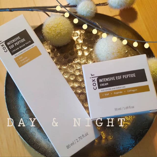 GREAT FOR WINTER TIME. 🏂 #pickyreview #coxir #egfpeptide ☀vREVIEW ☀about the 𝙄𝙣𝙩𝙚𝙣𝙨𝙚 𝙀𝙂𝙁 𝙋𝙚𝙥𝙩𝙞𝙙𝙚 𝙘𝙧𝙚𝙖𝙢 𝙖𝙣𝙙 𝙢𝙖𝙨𝙠 I received both products from @go.picky @pickyrewards @coxir_official for free in exchange for my honest review ❤ I was so excited, when I received the news, that I won this give away!!! Excited about a promising anti aging skincare line for dry + mature skin!!! You know, I'm in my late 40s + my skin craves this kind of intense moisture + nourishment + ingredients, which helps with cell regeneration. Will this line reach my high expectations? 𝙇𝙚𝙩'𝙨 𝙨𝙚𝙚... 😇 𝙆𝙚𝙮 𝙞𝙣𝙜𝙧𝙚𝙙𝙞𝙚𝙣𝙩𝙨: ✔️𝙀𝙂𝙁 (sh- Oligopeptide1) ➡️speeds up the regeneration of the epidermis cells ✔️𝘾𝙤𝙥𝙥𝙚𝙧𝙩𝙧𝙞𝙥𝙚𝙥𝙩𝙞𝙙𝙚 ➡️enhances skin elasticity, improves wrinkles + revitalizes the skin ✔️𝘾𝙤𝙡𝙡𝙖𝙜𝙚𝙣 ➡️moisturizing + skin softening Additionals: ✔️Niacinamide ➡️brightening , for collagen production ✔️Dimethicone ➡️smooth silky texture ✔️Panthenol ➡️ soothing ✔️vanilla extract / coconut ➡️ pleasant scent The 𝙢𝙖𝙨𝙠 has a more nourishing texture. It is packed with natural oils like squalane, macadamia oil + shea butter which give this mask that smooth buttery feeling. Sod hyaluronate + mushroom extract provide a good amount of hydration. + ginseng helps to revitalize Works great as a sleeping mask 🌜❤ I love this one my neck area
