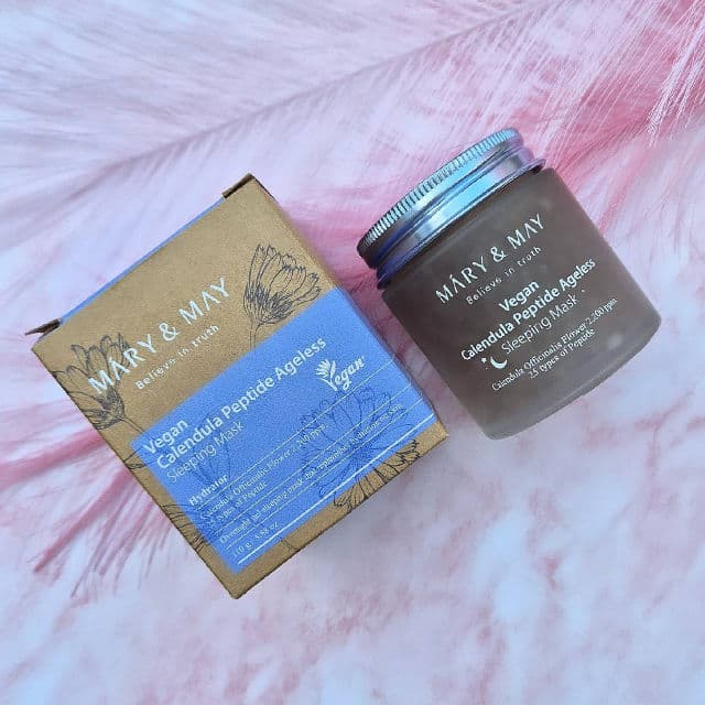 Mary&May Vegan Calendula Peptide Ageless Sleeping Mask ❤️ Use my Rewards code NATJE9999 for discounts on Yesstyle or Olive Young or my code INF105NATJE on https://vana.ly/WG4yjv to get 15% off on Stylevana! 𝘿𝙞𝙨𝙘𝙡𝙖𝙞𝙢𝙚𝙧: 𝙄 𝙧𝙚𝙘𝙚𝙞𝙫𝙚𝙙 𝙩𝙝𝙞𝙨 𝙥𝙧𝙤𝙙𝙪𝙘𝙩 𝙛𝙤𝙧 𝙛𝙧𝙚𝙚 𝙞𝙣 𝙚𝙭𝙘𝙝𝙖𝙣𝙜𝙚 𝙛𝙤𝙧 𝙢𝙮 𝙝𝙤𝙣𝙚𝙨𝙩 𝙧𝙚𝙫𝙞𝙚𝙬. 𝘼𝙡𝙡 𝙤𝙥𝙞𝙣𝙞𝙤𝙣𝙨 𝙖𝙧𝙚 𝙨𝙩𝙧𝙞𝙘𝙩𝙡𝙮 𝙢𝙞𝙣𝙚! 𝐖𝐡𝐚𝐭 𝐢𝐬 𝐢𝐭 𝐚𝐧𝐝 𝐰𝐡𝐚𝐭 𝐢𝐧𝐠𝐫𝐞𝐝𝐢𝐞𝐧𝐭𝐬 𝐝𝐨𝐞𝐬 𝐢𝐭 𝐜𝐨𝐧𝐭𝐚𝐢𝐧? The Mary&May Vegan Calendula Peptide Ageless Sleeping Mask is a very lightweight gel textured sleeping mask containing little speckles of Calendula Flower, for it's soothing properties, 25 types of peptides to boost collagen production, Ceramide to strengthen the skin barrier, Chamomille Extract amd Hyaluronic Acid for their soothing and moisturising properties and Centella Asiatica for it's anti-inflammatory, soothing and healing properties. It also contains Gardenia Extract, Burdock Root Extract, Mud Mushroom Extract, Fig Extract, Kava Cover Leaf / Root / Stem Extract, Matricaria Extract, Feverfew Extract, Port Marigold Flower and Pathenol. It claims to moisturize, soothe and nourish the skin while you sleep, resulting in radiant looking skin when waking up in the morning. It's a vegan and cruelty free product, contains no harmful ingredients and is hypoallergenically and dermatologically tested. 𝐓𝐡𝐞 𝐬𝐜𝐞𝐧𝐭: This mask has a light and pleasant floral scent which doesn't keep lingering. It does contain fragrance so that's good to know. 𝐓𝐞𝐱𝐭𝐮𝐫𝐞 𝐚𝐧𝐝 𝐟𝐞𝐞𝐥: This lightwheight gel textured mask feels really refreshing and cooling while applying, spreads easily and absorbs rather quickly, but not immediately though, it still needs a few minutes to absorb completely. It doesn't feel greasy, oily, sticky, dry or tight and I haven't expressed any irritations on discomfort either. 𝐓𝐡𝐞 𝐩𝐚𝐜𝐤𝐚𝐠𝐢𝐧𝐠: The Mary&May Vegan Calendula Peptide Ageless Sleeping Mask comes in a beautiful looking 110 ml frosted glass container with a silvery, light purple colored lightweight metal screw cap, which is engraved with the brand name and a nice looking plant doodle, emphasizing the Vegan and sustainable approach of Mary&May. The container has white text printed directly on the glass but contains very little info. It looks really nice though, very glamorous and fresh The gorgeous looking container comes in a brown and purple colored carton box, containing product and brand info, an ingredients list on the side of the box and directions on how to use it in both English as Korean. English directions and brand info is on the bottom so it requires a bit of a search! ;) 𝐓𝐡𝐞 𝐫𝐞𝐬𝐮𝐥𝐭: After application, my skin feels silky smooth, satin soft, moisturized, firm, smooth and nourished. Immediately after application, my skin looks healthy, smooth and balanced. And when waking up the next morning, my skin feels soft, smooth, plump, moisturized, hydrated and nourished and looks balanced and healthy, with a healthy looking radiant glow. 𝐌𝐲 𝐨𝐩𝐢𝐧𝐢𝐨𝐧: I'm highly impressed by the immediate cooling amd refreshing feeling when applying the mask and I'm absolutely loving the amount of moisture and hydration it provides during the night. I love the results after waking up the next morning! Highly recommended for everyone looking for an effective and efficient way to restore moisture while sleeping! 𝐑𝐚𝐭𝐢𝐧𝐠: ⭐️⭐️⭐️⭐️⭐️