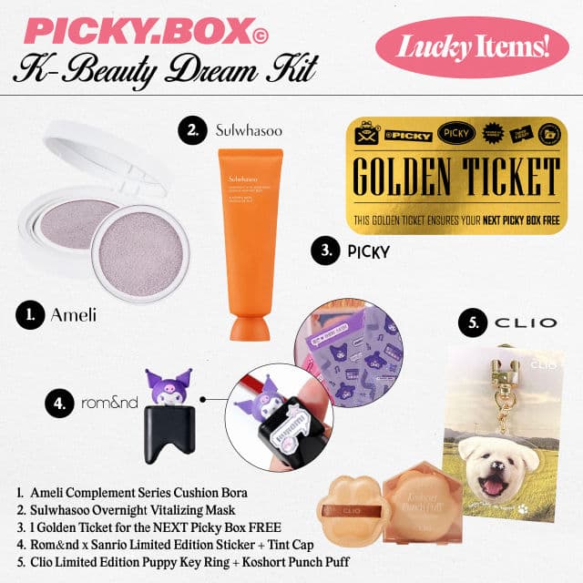 The moment you've been waiting for is finally here! Our K-beauty DREAM KIT Picky Box is now available for pre-orders! 😍 This box is filled with 12 of the hottest K-beauty items, ranging from skincare, makeup, and haircare, straight from Korea 🇰🇷 to your doorstep 📦  🤑The total box with international shipping is valued at $259.99 USD but you can get it for $59.99 by using our Picky voucher!! But wait, there's more! 🎉 You could be one of the FIVE LUCKY winners of a special item in your box! 🎁 THESE ARE LIMITED EDITION ITEMS and some of the products aren't even available for purchase!!! So don't miss your chance to be a part of the lucky five by pre-ordering right now! 🛒💫 Here is how to pre-order WITH the discount: 💌 Go to Picky App and click on Picky coupons 💌 Redeem the 75% off Picky Box coupon 💌 Go to Picky Shop and click Pre-order [Link in bio] 💌 Add the coupon code in the payment section Products in box: ✨ Aromatica | Rosemary Root Enhancer 100 ml ✨ Benton | Fermentation Eye Cream 30 g ✨ Cosnori | Eyelash Tinting Serum #01 Deep Black ✨ Dasique | Juicy Dewy Tint #06 Rose Apple ✨ Glint | Stick highlighter #Dewy Moon or #Milky Moon ✨ Numbuzin | No.3 Skin Softening Serum 50 ml ✨ Skinfood | Black Sugar Mask Wash Off 120g ✨ Skinfood | Peach Cotton Multi Finish Powder ✨ Unleashia | Sisua Blush #4 Rose Chocolate Mousses ✨ Unleashia | Non Sticky Dazzle Tint #3 Glow Day ✨ Unleashia | Pretty Easy Glitter Stick #6 Wee Hours ✨ Unleashia | Shaper Defining Eyebrow Pencil #3 Taupe Gray Lucky items: 🎈1 Golden ticket for the NEXT picky box [FREE] 🎈 Ameli COMPLEMENT SERIES CUSHION BORA 🎈Sulwhasoo Overnight Vitalizing Mask 🎈Romand & Sanrio limited edition sticker + tint cap 🎈Clio 댕댕이 [puppy] key ring + Koshort Punch Puff 🕒 COMMENT below if you bought it and let us know you're in for the race to win the lucky box! 🏆 🤩 Got questions or just want to share your excitement? Drop your thoughts in the comments section!