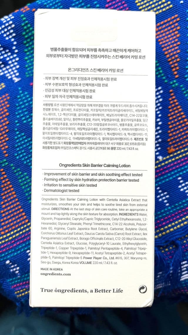 Ongredients - Skin Barrier Calming Lotion