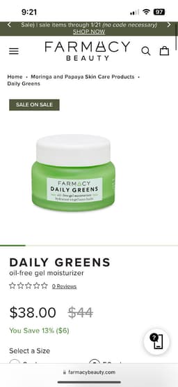 Farmacy - Daily Greens Oil-Free Gel Moisturizer with Moringa and Papaya