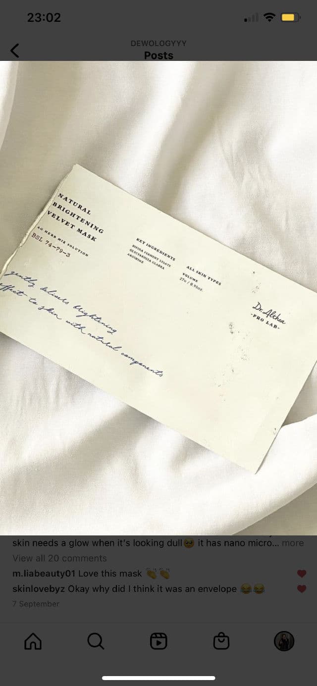 This is a sheet mask I’ve used twice now it’s ideal for when your skin needs a glow when it’s looking dull🥹 it has nano micro fiber material and is infused with soothing and brightening ingredients. Contains rice, oatmeal and honey extract for brightening of the skin. Green tea helps tired looking skin and coconut aswell as shea butter helps nourish the skin. With regular use it can help with evening out the skin tone and boosting elasticity. I love the sheet mask it is one of the few which fits my face. Not completely but it fits it well. It is packed with serum and I like the feel of the sheet mask it’s not too thin or flimsy it has a durable sheet texture. Personally it gives that velvet and luxurious feeling which every now and again is a nice treat. Dr Althea masks will always win my heart they’re super boujie