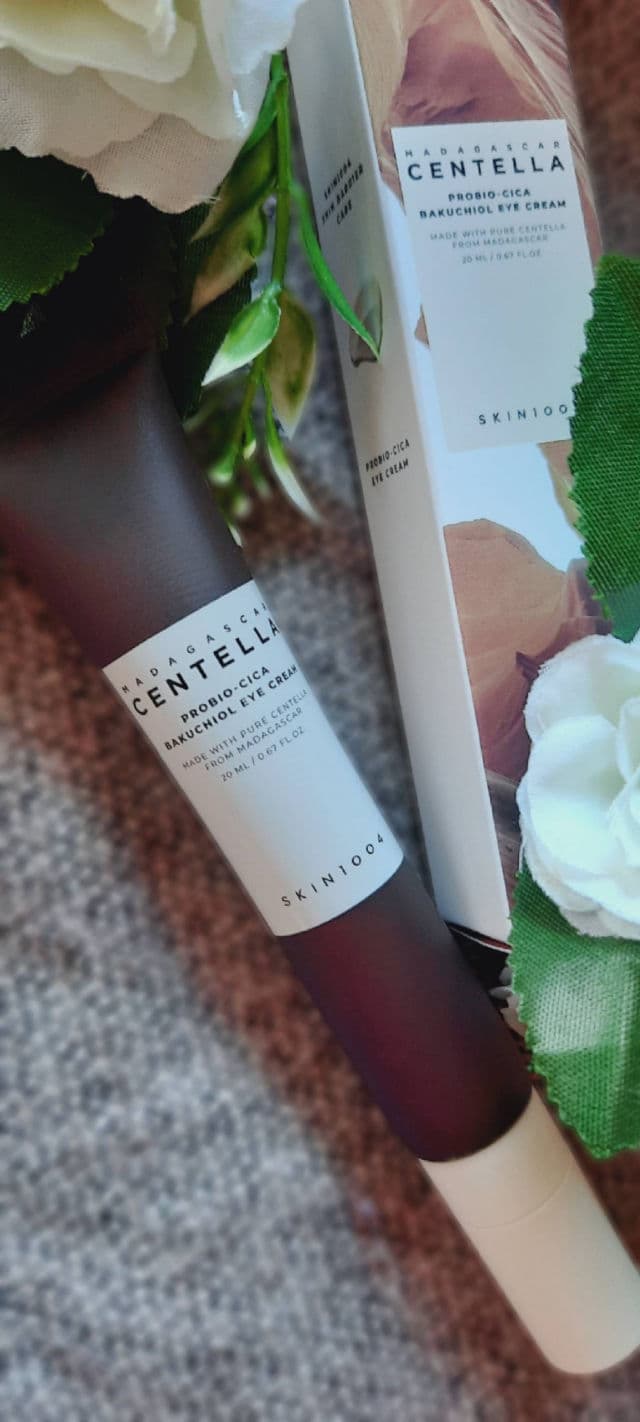 Skin1004 Probio-Cica Bakuchiol Eye Cream is the perfect solution for anyone who wants anti-aging benefits from an under-eye treatment without the harsh side effects that sometimes accompany a retinol product. Because its made with natures retinol, Bakuchiol, which comes from the seeds of seeds of the Psoralea corylifolia (nicknamed "babchi") it can be as effective as retinol at erasing fine lines, improving skins texture , and stimulating collagen production receptors in the skin, but with less purging, peeling and burning. The babchi plant has been used in traditional Indian Ayurvedic and Chinese medicine for many years so I believe whole heartedly in it's natural benefits. This eye cream has a beautiful silky feel to it and a handy, pillowy-soft, applicator tip for massaging it in which feels amazing. I notice an immediate effect of smoothing and plumping of my unde-reye area whenever i use it. I keep it in my skincare frig for an extra bit of cooling and a little "spa facial" effect. It has a very lightly noticeable fresh fragrance to it but its nothing offensive and it goes away quickly. I enjoy this product very much and I look forward to seeing the, anti-aging benefits from long-term use. I recommend this for all skin types but especially anyone who's looking to begin a retinol regimen because its so gentle and sensitive skin friendly.